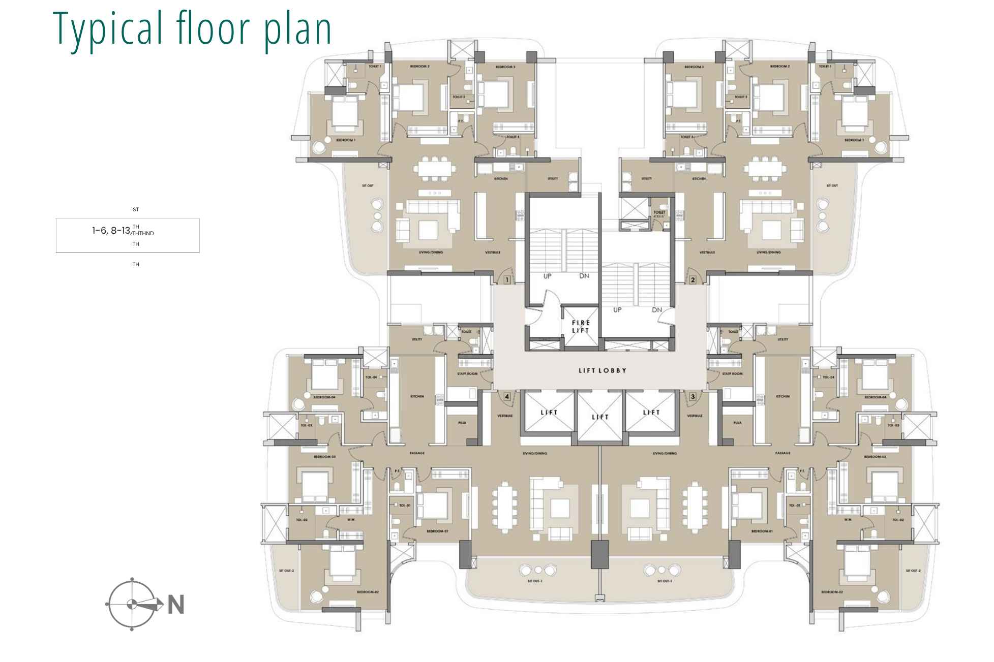 | Carpet Area | 1850 - 2890 | Typology | 3 BHK, 4 BHK |
