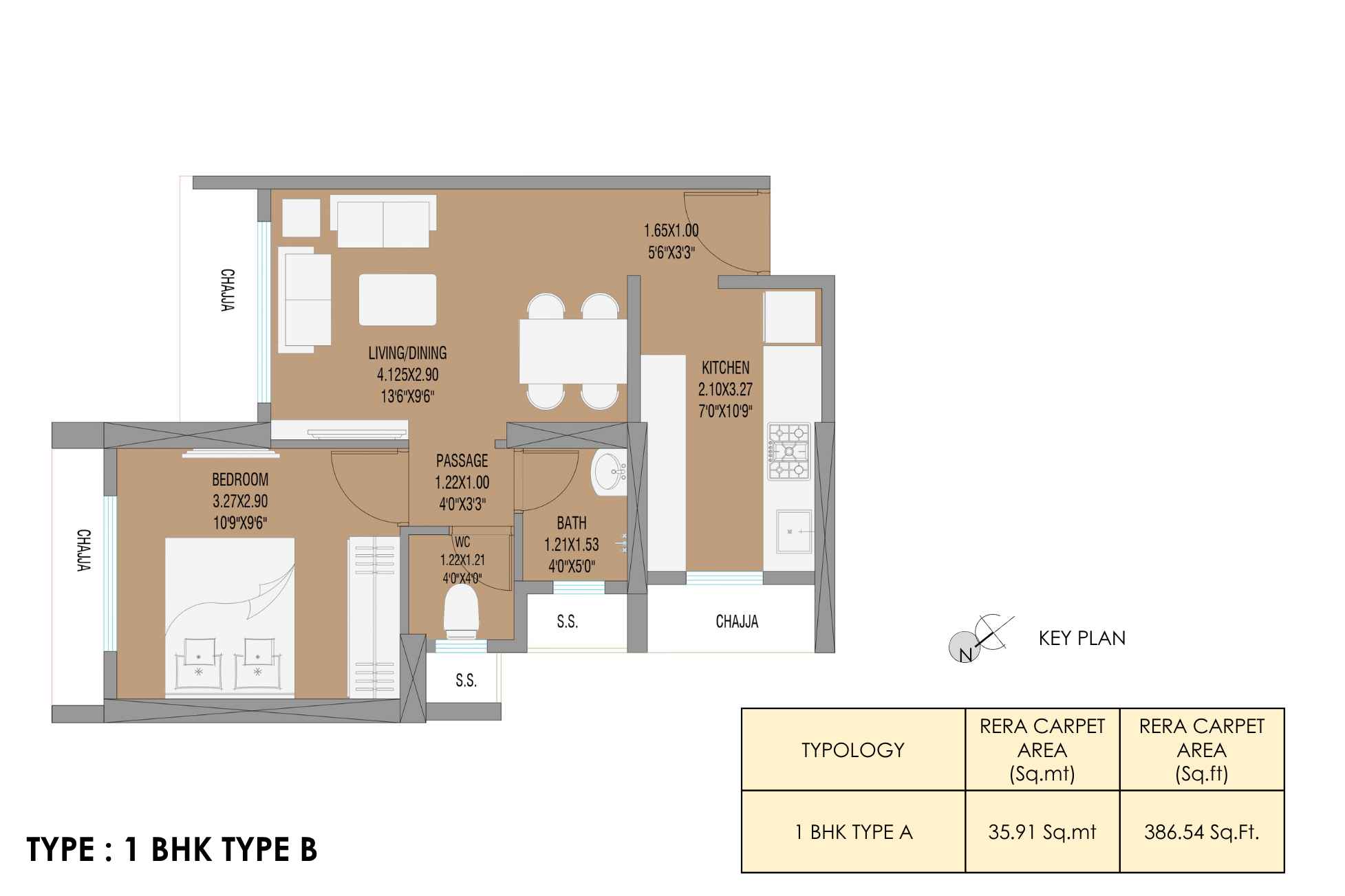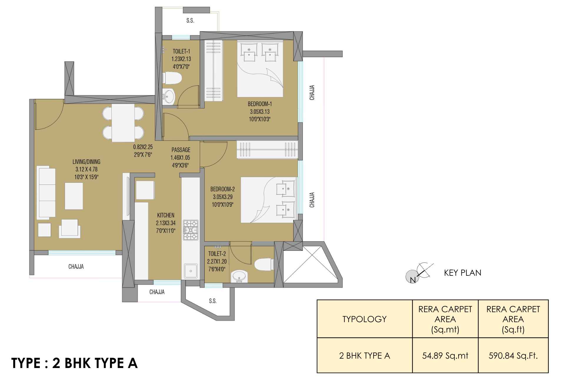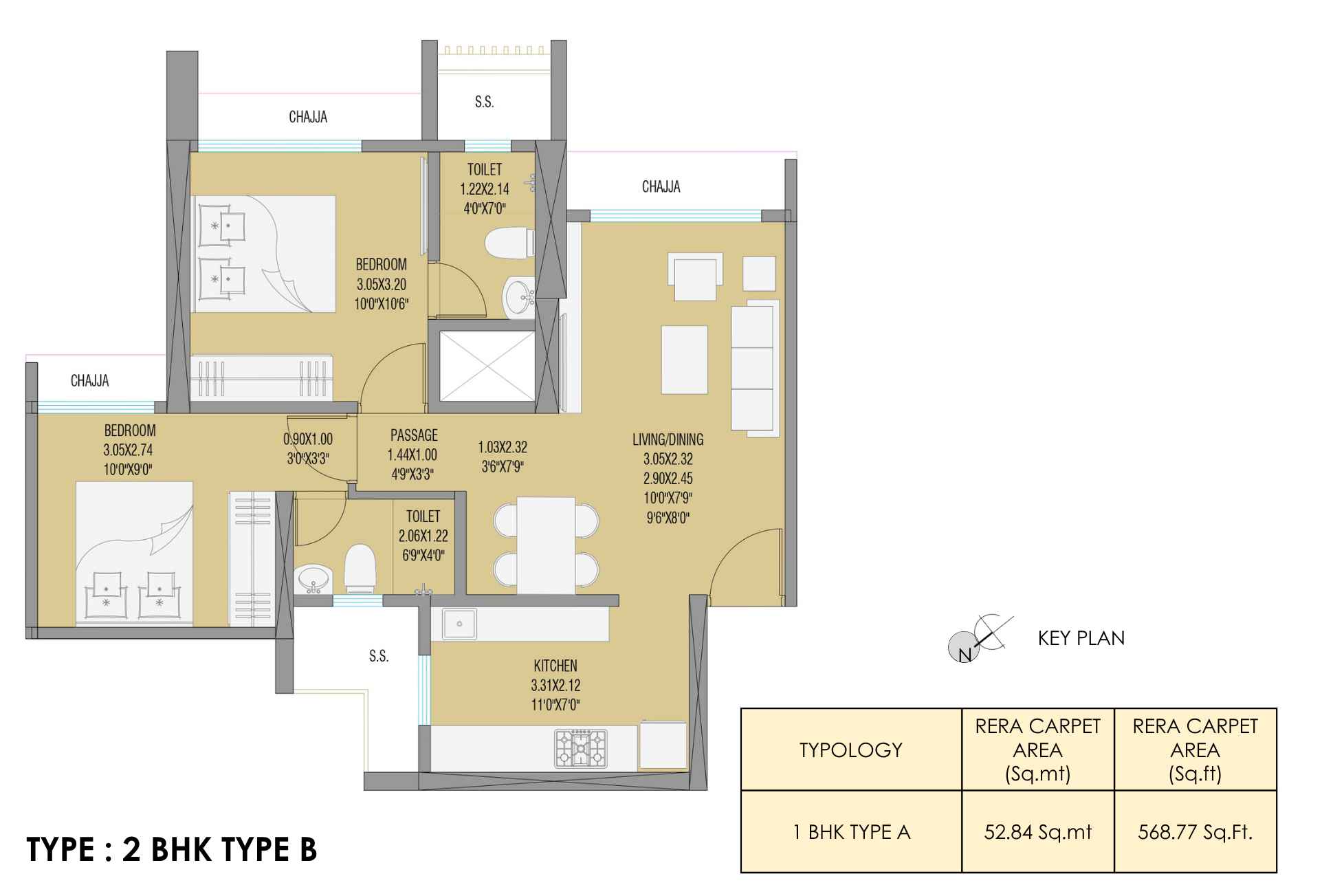 | Carpet Area | 387 - 590 | Typology | 1 BHK, 2 BHK |