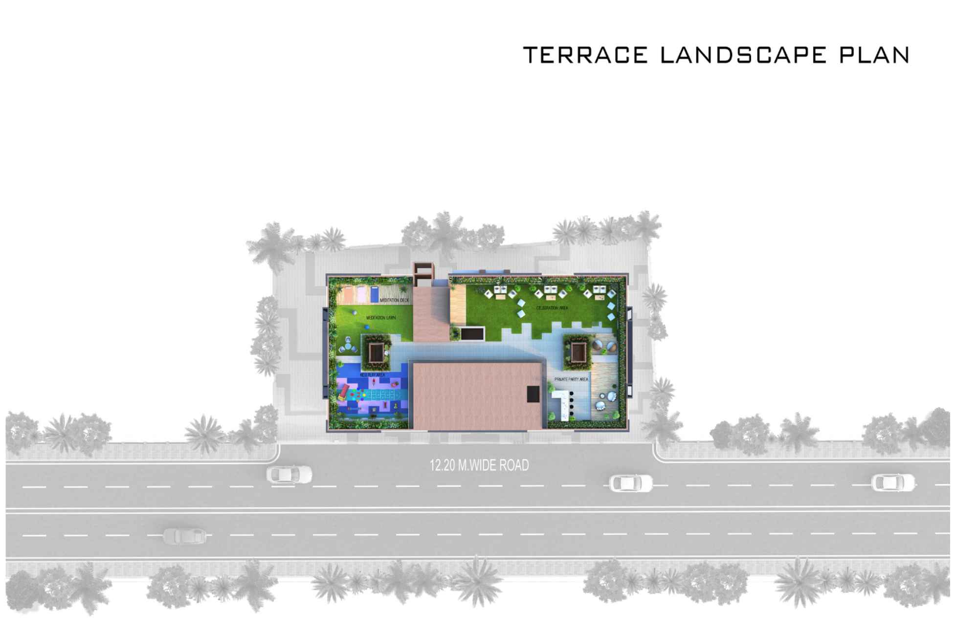 Aryana Heights has Handpicked Amenities like co-working space, fully-equipped gymnasium, rooftop amenities, terrace garden, well-equipped kids' play area, senior citizen zone, comfortable sitting area, a mini movie zone, and a dedicated walking track