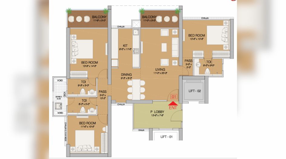 | Carpet Area | 744 – 1259 Sqft | Typology | 2 & 3 BHK |