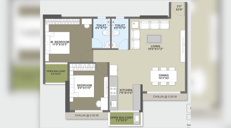 Olive Boulevard offers 2 BHK 456 sqft to 3 BHK 825 sqft homes