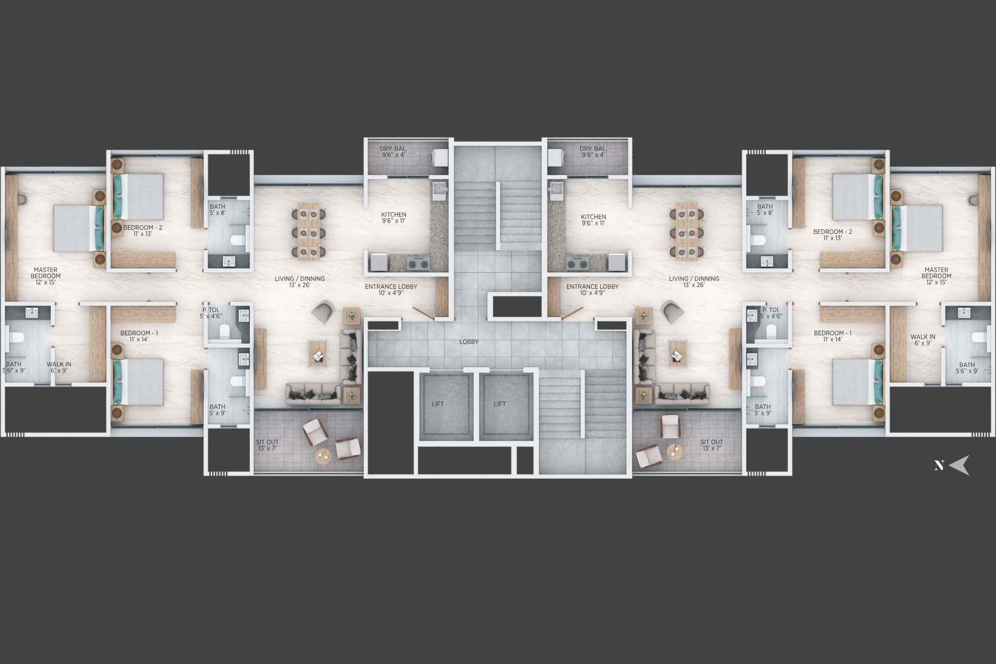 | Carpet Area | 1316 - 2813 | Typology | 3, 4 & 4.5 |
