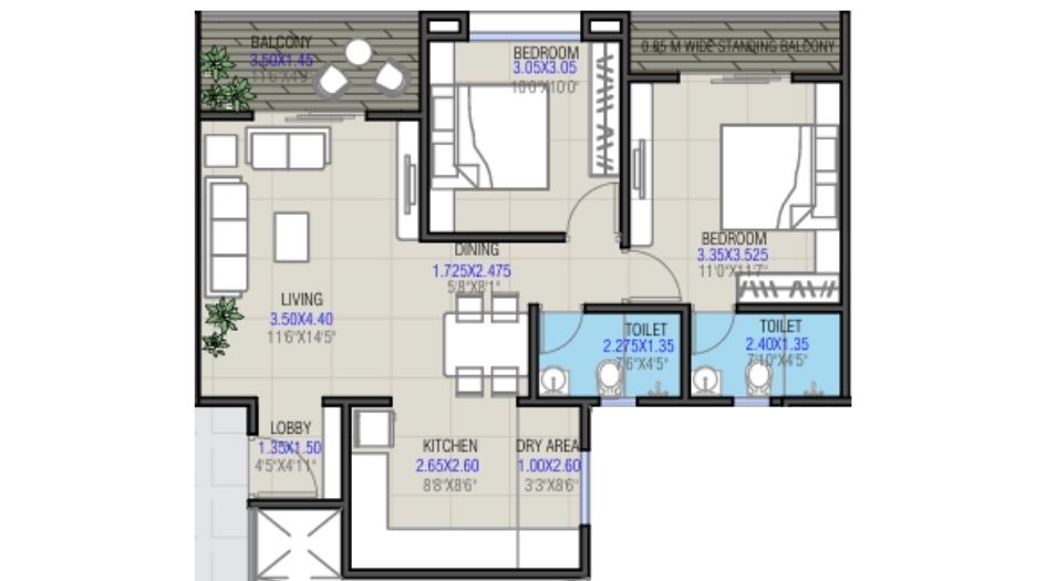 | Carpet Area | 736 - 777 | Typology | 2 BHK |
