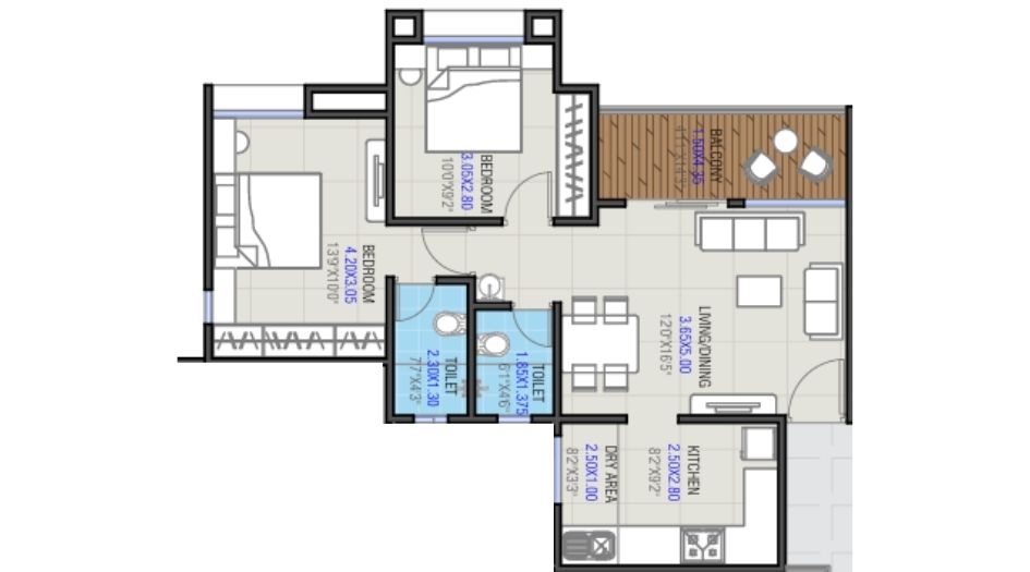 | 2 BHK | 734 sq. ft. | ₹65.00 Lac* | Unfurnished |