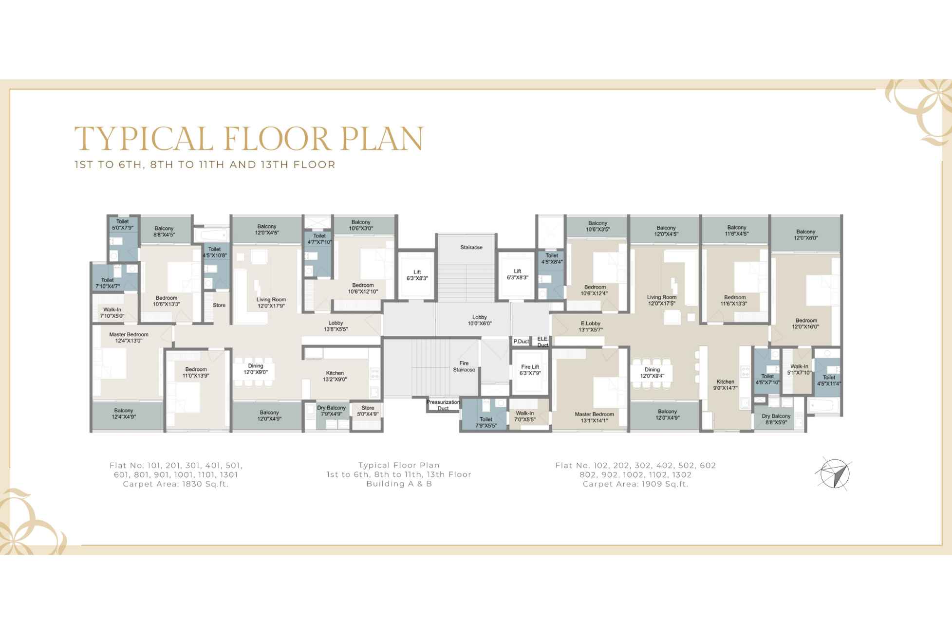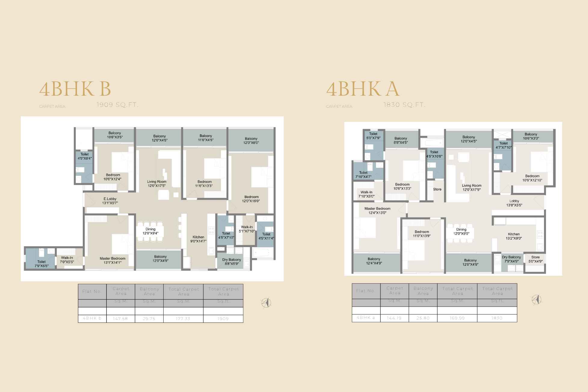 | Carpet Area | 1830 - 3818 | Typology | 4 BHK |