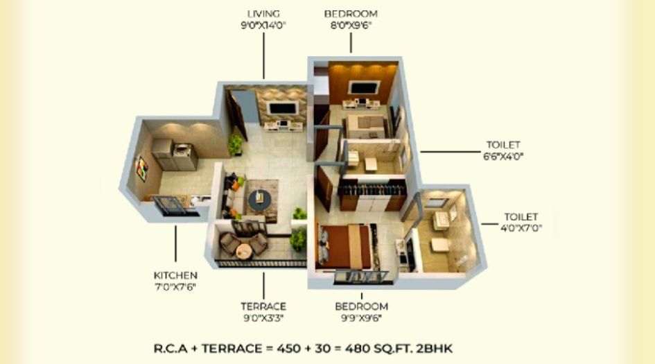 | 2 BHK | 480 sqft sq. ft. | ₹37.99 Lac* | Unfurnished |