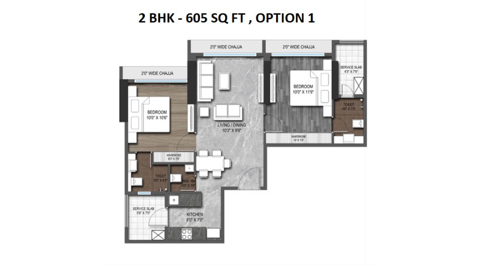 Roswalt Zaiden offers 2 BHK homes ranging from Carpet 401 - 1210 Sqft.