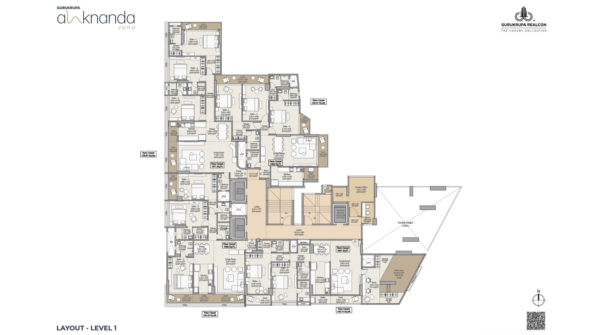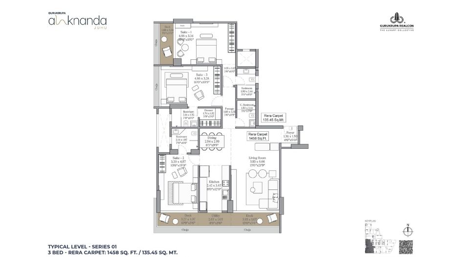 | Carpet Area | 1458– 2295 | Typology | 3 BHK, 4 BHK |