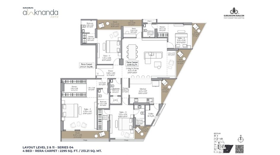 Gurukrupa Alaknanda offers 3 & 4 BHK homes ranging from Carpet 1458 to 2295 Sqft.