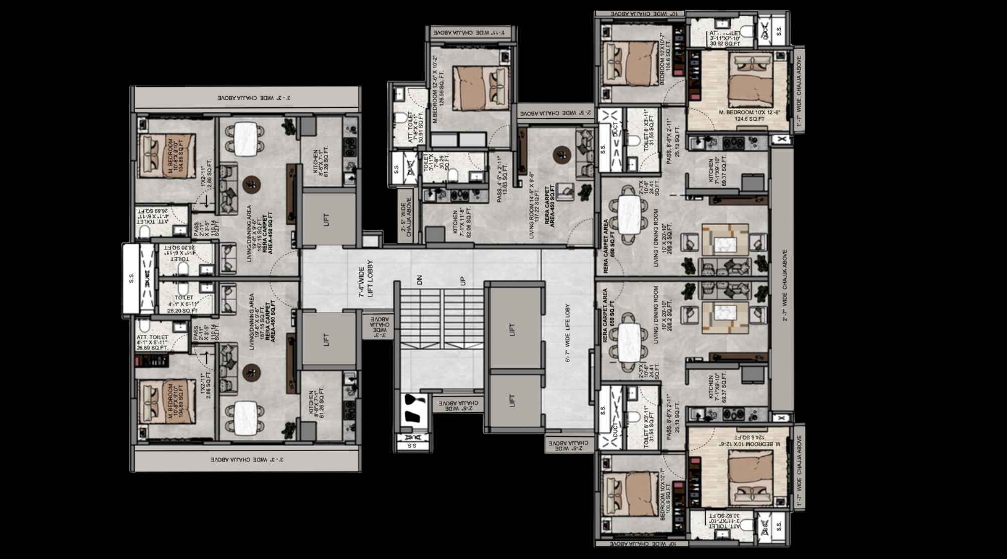 | Carpet Area | 650 - 1300 Sqft | Typology | 2 BHK, 4 BHK |