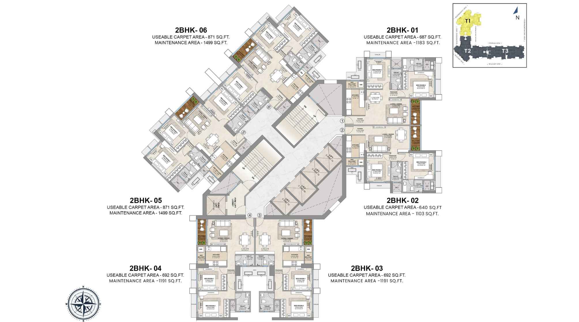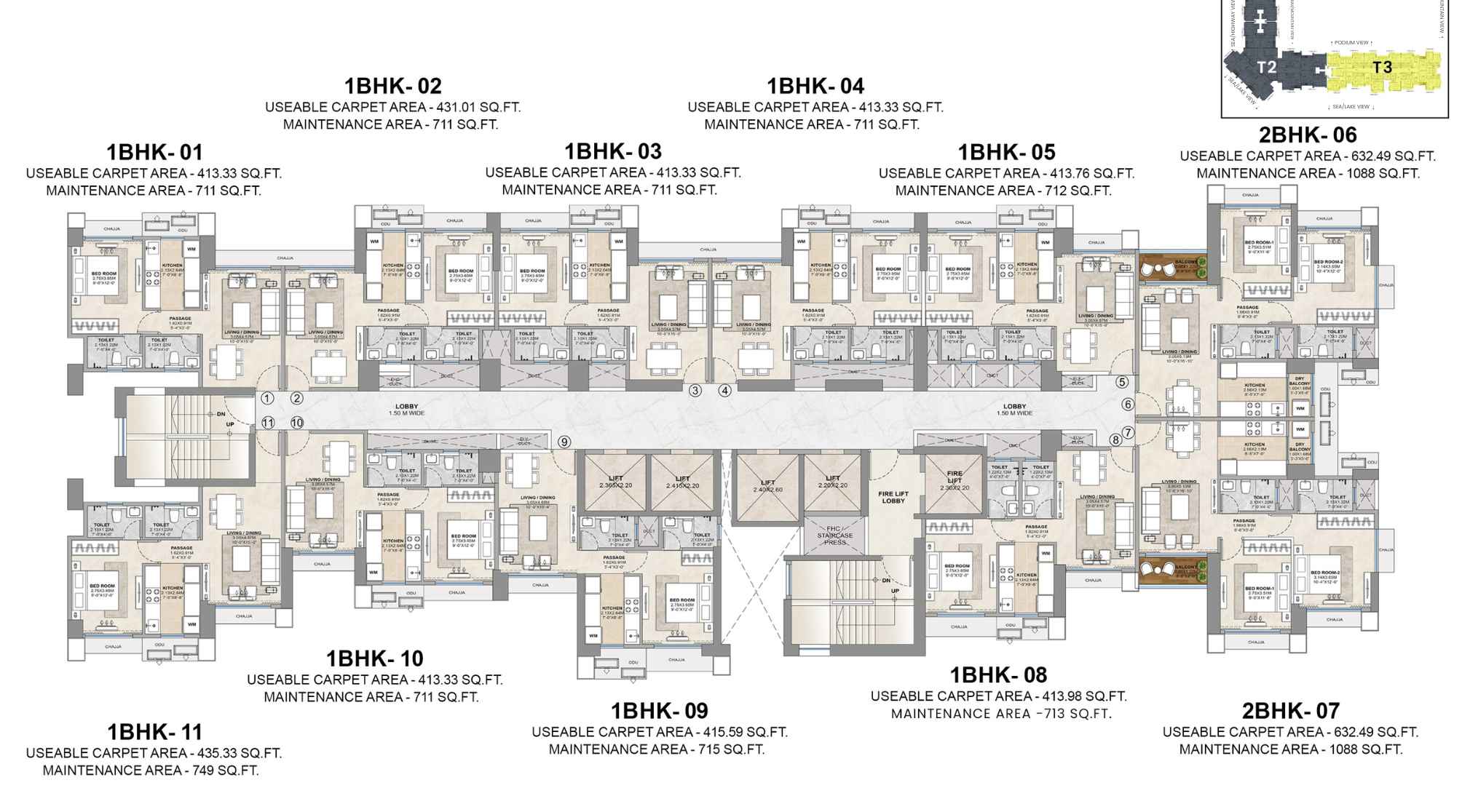 | Carpet Area | 413 - 962 Sqft | Typology | 1, 2, & 3 BHK |