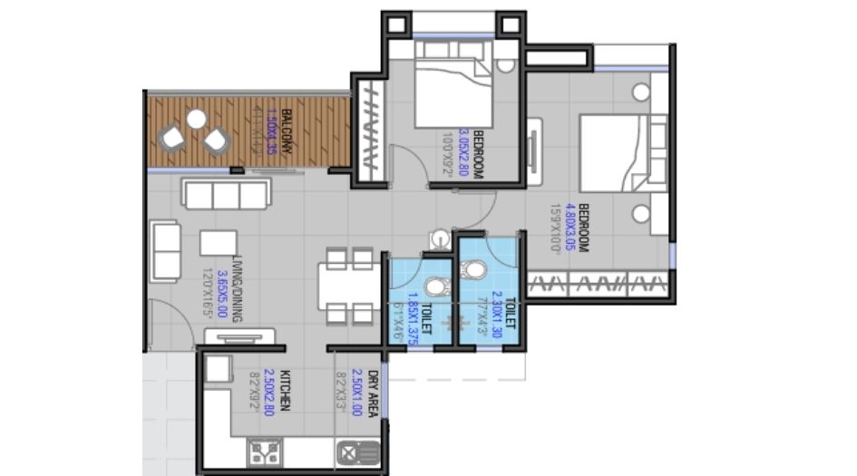 | 2 BHK | 734 sq. ft. | ₹65.00 Lac* | Unfurnished |