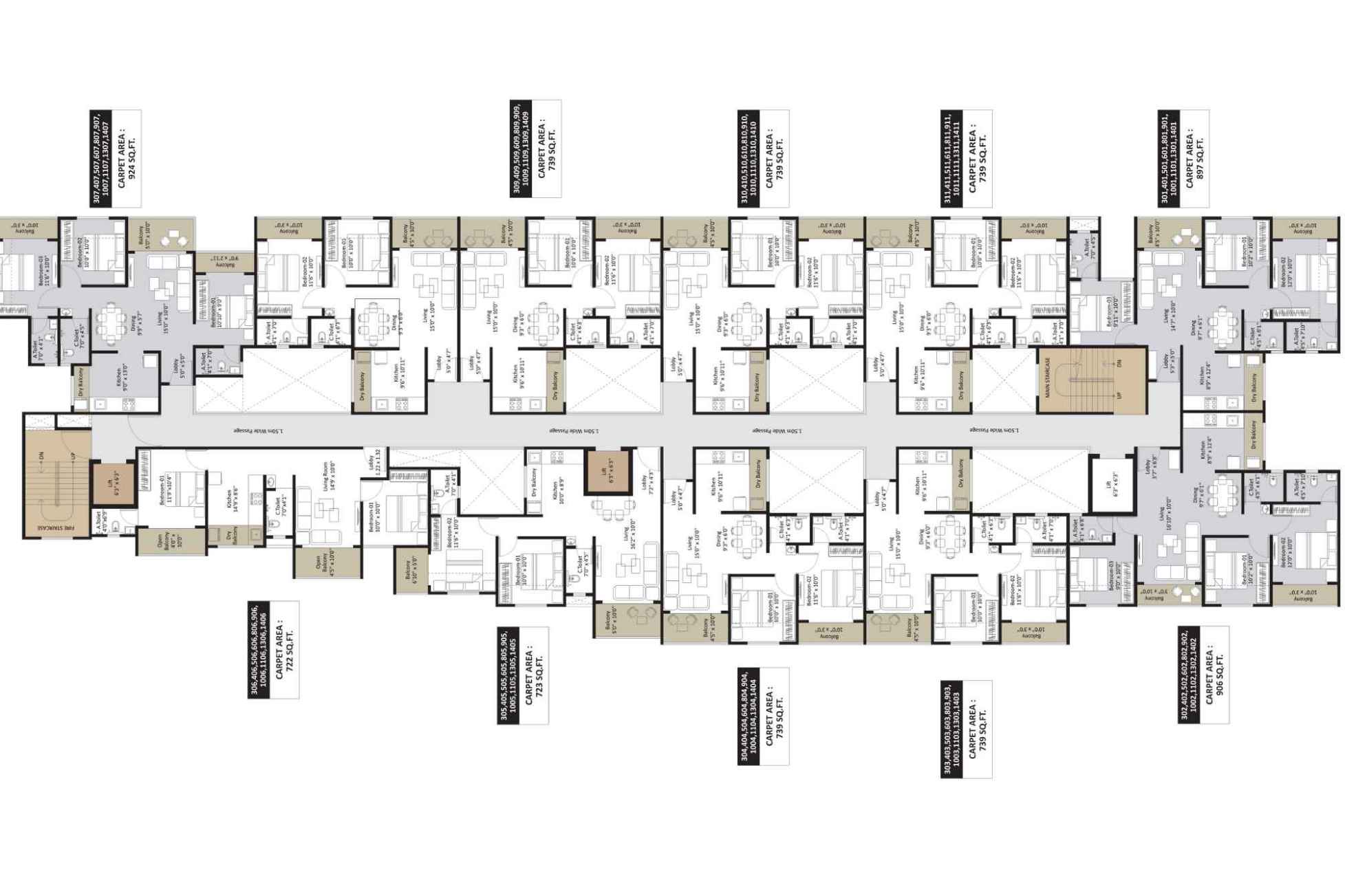 | Carpet Area | 722 -924 Sq.ft | Typology | 2 BHK, 3 BHK |