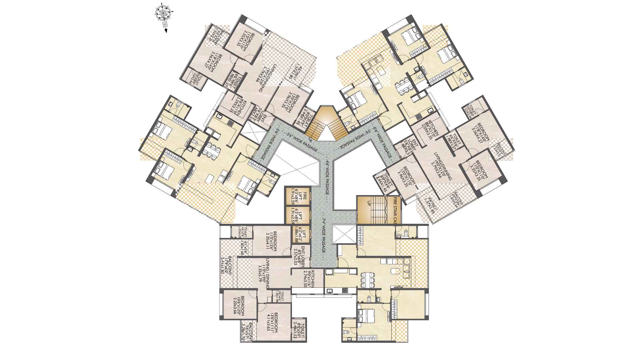 - Spacious living–dining areas with extra-wide balconies